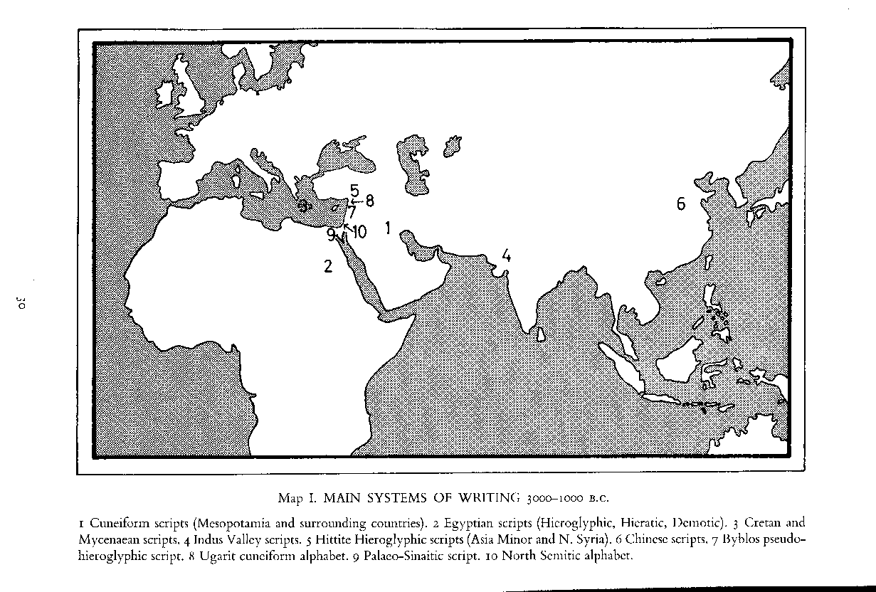Main systems of writing, 3000 BC to 1000 BC.